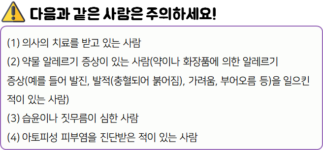 - 다음과 같은 증상을 보이는 사람은 사용 전, 의사 혹은 전문가와 충분한 상담 후 사용하시길 바랍니다.