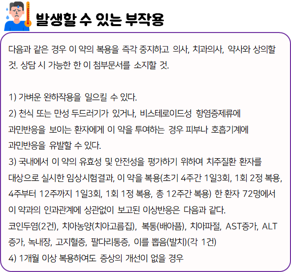 이 의약품은 치아지지조직(잇몸, 치주인대, 치조골)을 강화시켜 주는 약이니 참고하시길 바랍니다.
