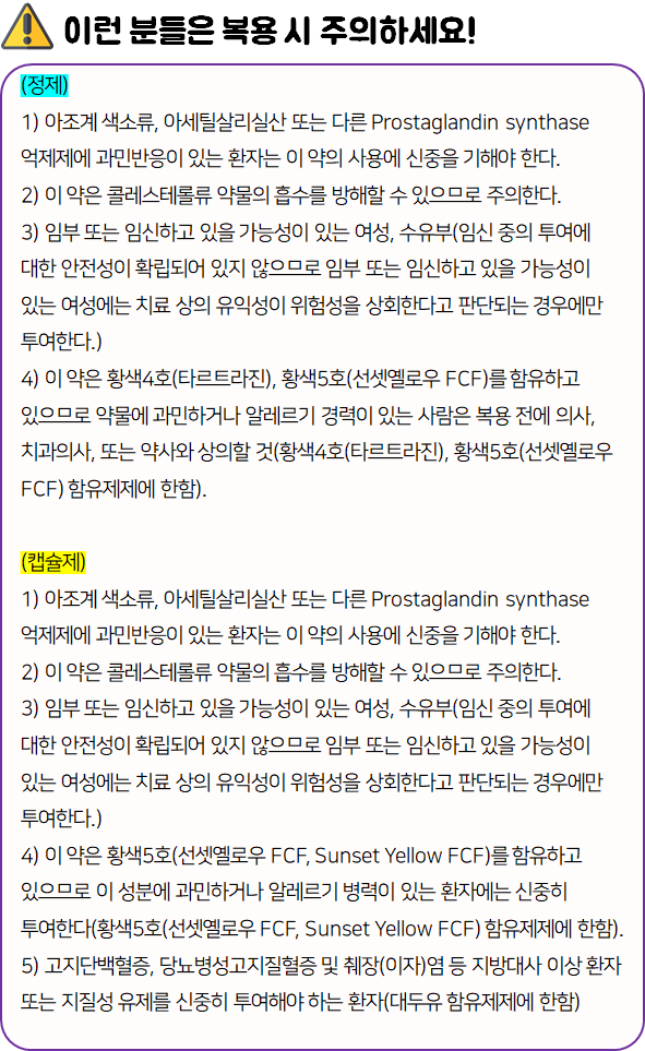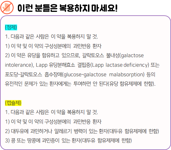 - 다음 환자는 복용 전 전문가 or 의사와 상담 후 복용하시길 바랍니다.