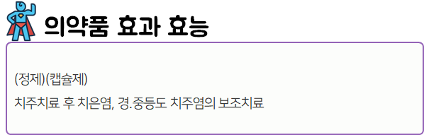 이 의약품은 치아지지조직(잇몸, 치주인대, 치조골)을 강화시켜 주는 약이니 참고하시길 바랍니다.