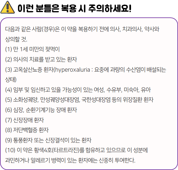 - 다음과 같은 사람들은 의약품 복용 전 참고하시길 바랍니다.