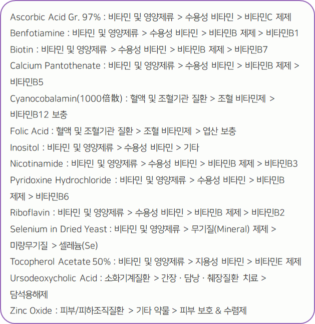 : 대사성 의약품 > 비타민제 > 혼합비타민제(비타민A, D 혼합제를 제외)