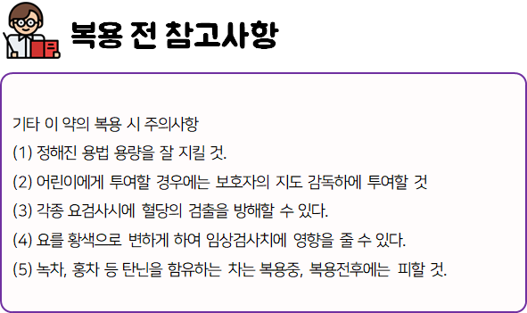 또한 복용 중 부작용 등의 이상반응이 나타날 시 즉시 복용을 멈추고, 전문가 or 의사와 상담하신 후에 복용 지속 여부를 결정 하시는 것이 좋습니다.