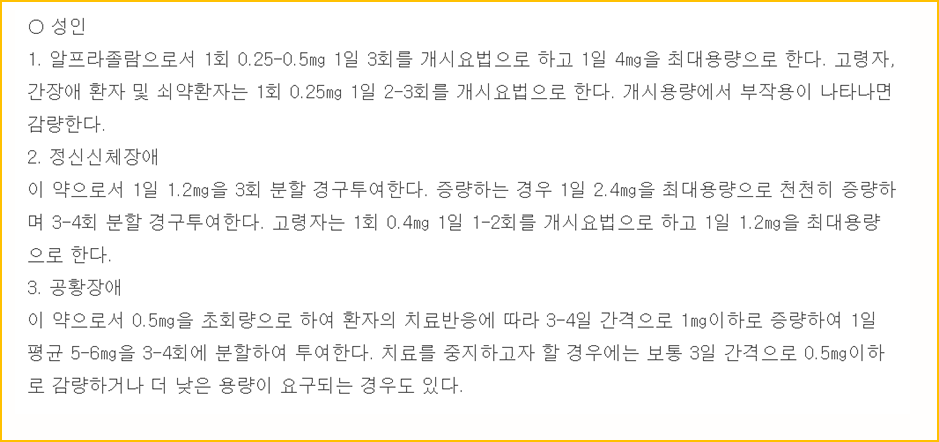 : Alprazolam 알프라졸람 0.25mg