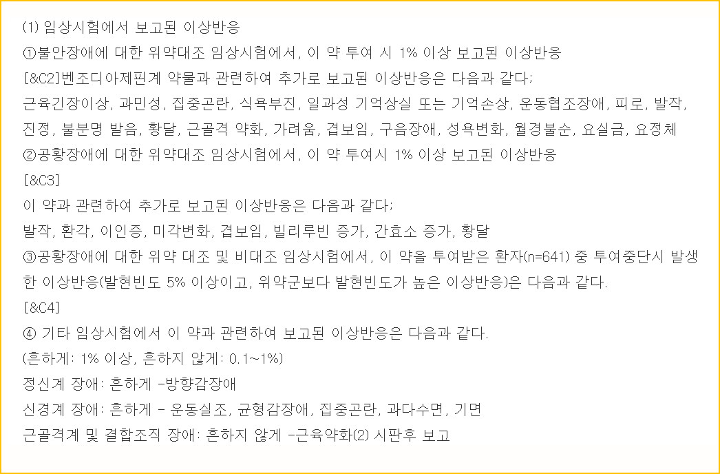 이 의약품은 복용 시, 진정 및 안정 효과를 나타냄으로써 각종 불안장애 증상을 개선하는 약입니다.
