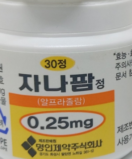 자나팜정 0.25mg 은 명인제약에서 제조하였고, 단일 성분의 전문의약품으로 분류됩니다.