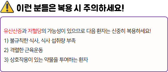 - 다음 환자는 복용 전 전문가 or 의사와 상담 후 복용하시길 바랍니다.