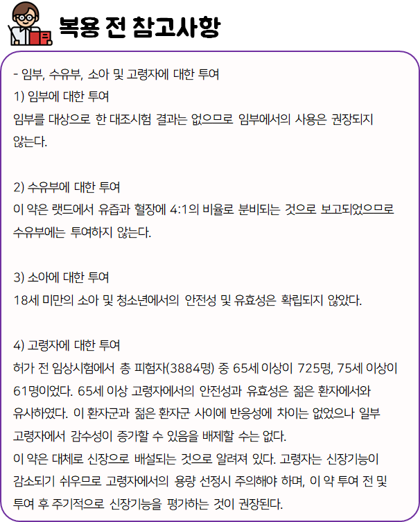 - 다음 환자는 복용 전 전문가 or 의사와 상담 후 복용하시길 바랍니다.
