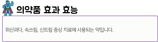 이 의약품은 '위산 분비를 감소시킴으로써 위산분비 과다로 인한 각종 소화기 증상을 개선하는 약'이니 참고하시길 바랍니다.