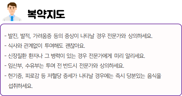 또한 복용 중 이상 반응이 나타나면 즉시 복용을 멈추고, 전문가나 의사와 상담하셔서 복용량을 줄이거나 복용을 멈추시는 것이 좋습니다.