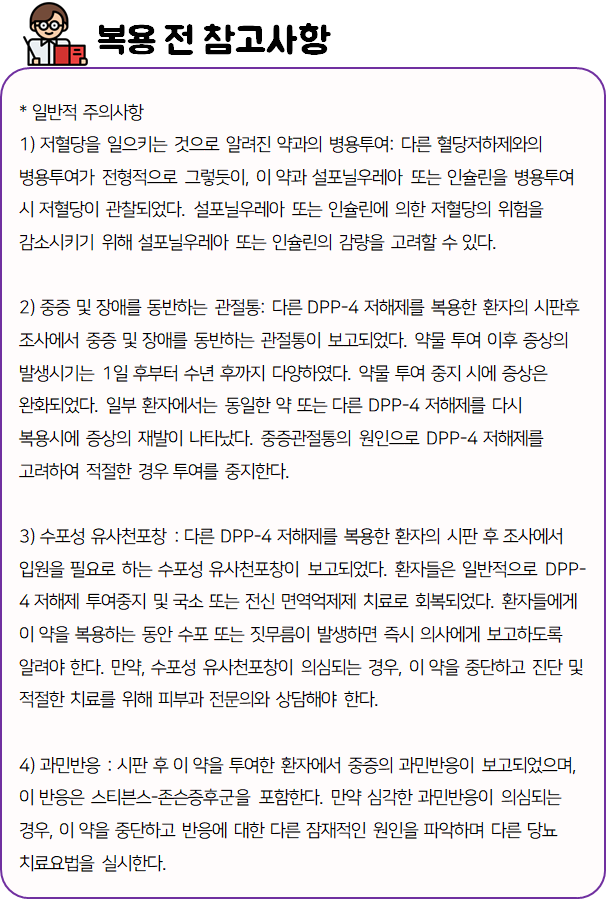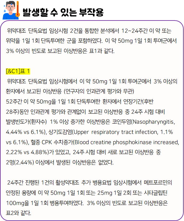 지금까지 제미글로정 50mg에 대한 정보를 알려드렸는데요, 모두 꼼꼼하게 잘 읽어보셨나요?