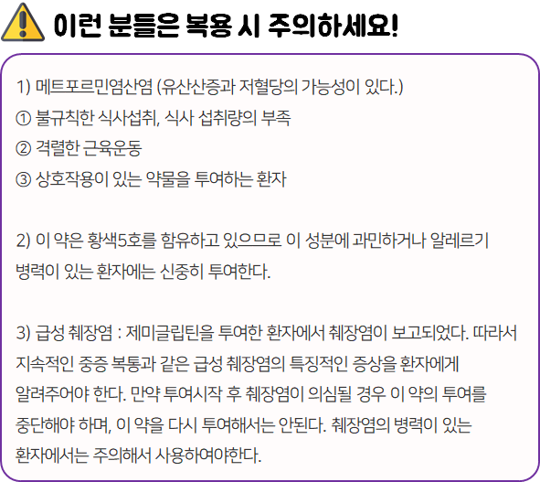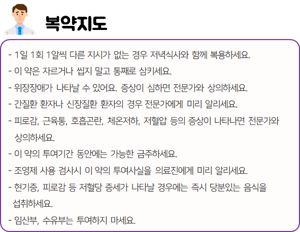 의약품은 반드시 복용 전에 복용 시 발생할 수 있는 부작용이나 주의사항 등을 미리 확인하신 후 드셔야 안전하게 먹을 수 있습니다.