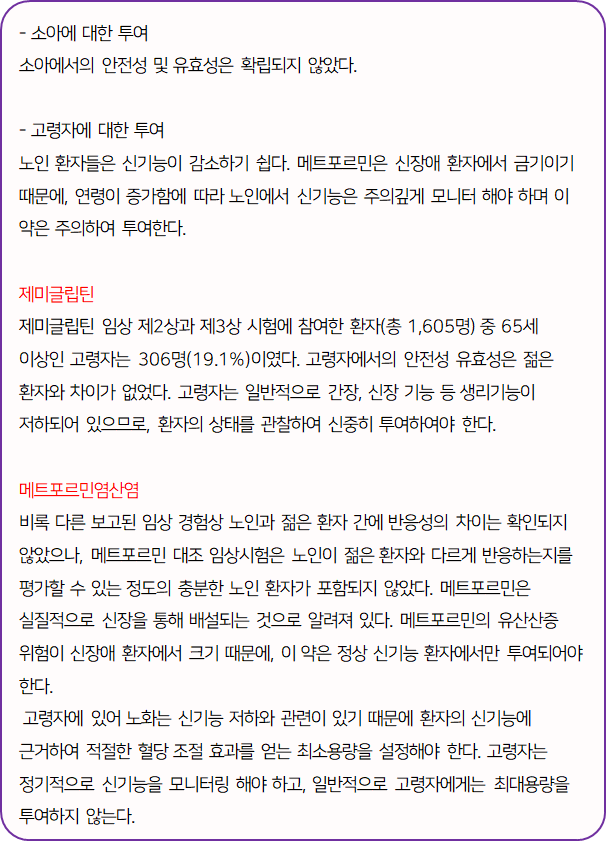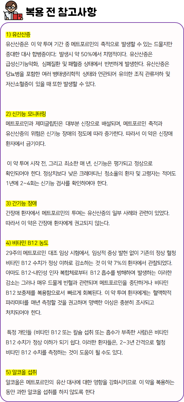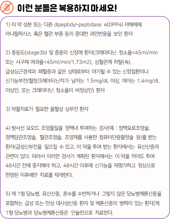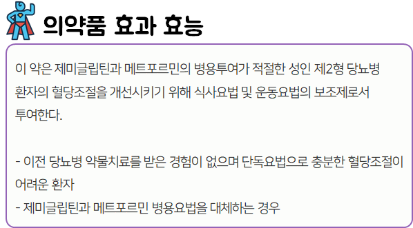 이 의약품은 인슐린 분비를 촉진하고, 당 생성을 억제하며 당의 사용을 증가시켜 혈당을 감소시키는 약이니 참고하시길 바랍니다.