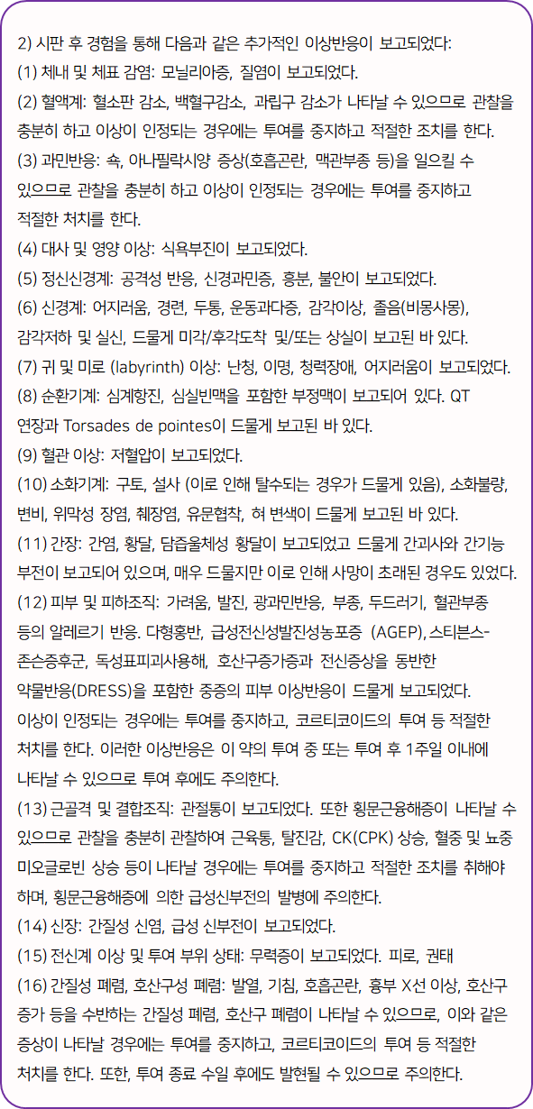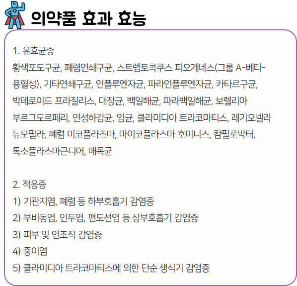 이 의약품은 항균작용을 나타냄으로써 세균에 의한 각종 감염증을 치료하는 약이니 참고하시길 바랍니다.