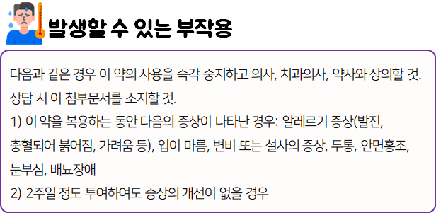 또한 복용 중 부작용 등의 이상반응이 나타날 시 즉시 복용을 멈추고, 전문가 or 의사와 상담하신 후에 복용 지속 여부를 결정하시는 것이 좋습니다.