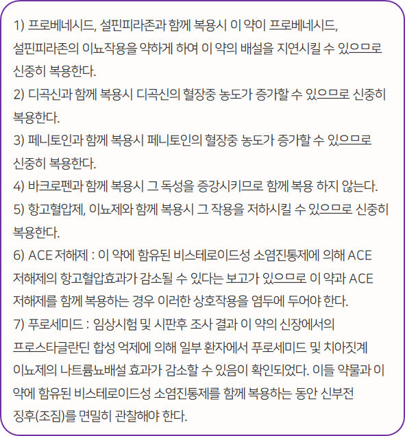 - 이 약을 복용(사용)하는 동안 다음의 약을 복용하지 말거나 같이 복용할 때 신중히 복용하시기 바랍니다.