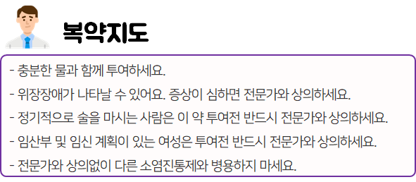 의약품은 반드시 복용 전에 복용 시 발생할 수 있는 부작용이나 주의사항 등을 미리 확인하신 후 드셔야 안전하게 먹을 수 있습니다.