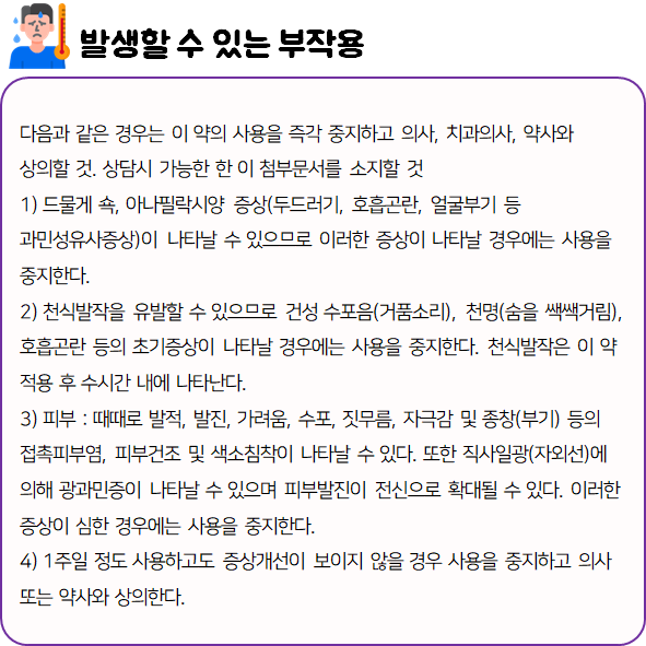 의약품은 반드시 복용 전에 복용 시 발생할 수 있는 부작용이나 주의사항 등을 미리 확인하신 후 드셔야 안전하게 먹을 수 있습니다.