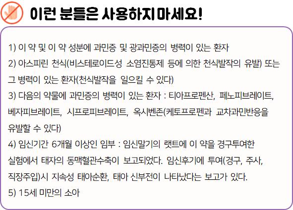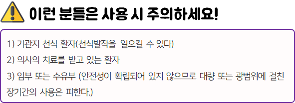 - 다음과 같은 사람은 복용 시 위험할 수 있으므로 복용하지 마시길 바랍니다.