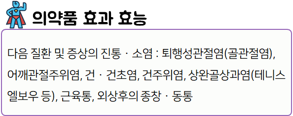 이 의약품은 염증을 완화시키고, 통증을 해소하는 약이니 참고하시길 바랍니다.