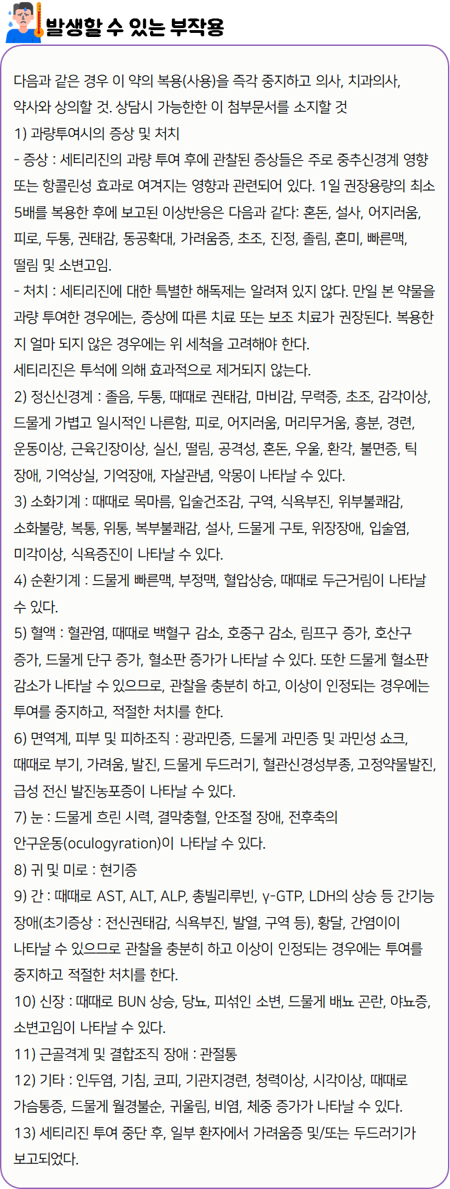 - 이 약을(를) 복용할 시 다음과 같은 부작용이 발생할 수 있으니 주의하시길 바랍니다.