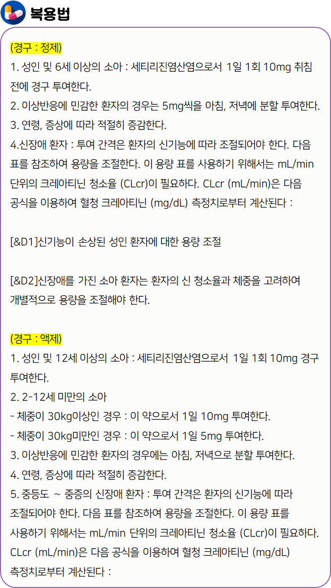 : Cetirizine Dihydrochloride 세티리진염산염 10mg