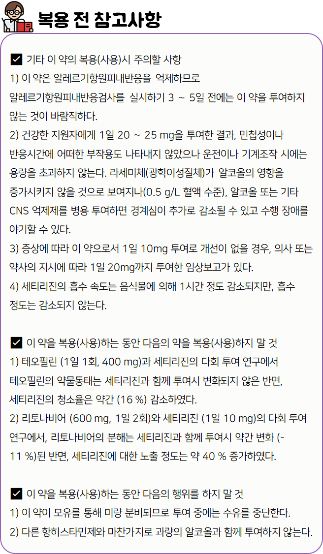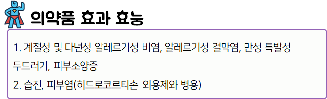 이 의약품은 알러지유발 물질의 작용을 차단하여 각종 알러지 증상을 개선하는 약이니 참고하시기 바랍니다.