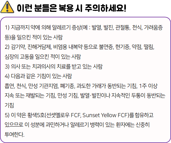 - 다음과 같은 사람들은 의약품 복용 전 참고하시길 바랍니다.