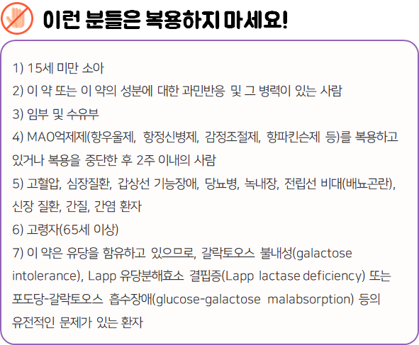 - 다음 환자는 복용 전 전문가 or 의사와 상담 후 복용하시길 바랍니다.