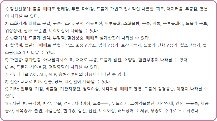 코싹엘정 복용할 시 다음과 같은 부작용이 발생할 수 있으니 주의하시길 바랍니다.