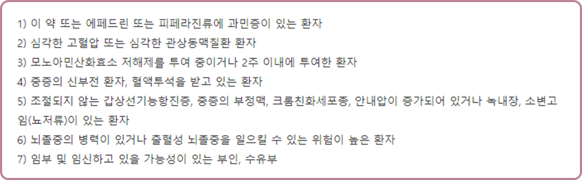 - 다음 환자는 복용시 위험할 수 있으므로 복용하지 마시길 바랍니다.