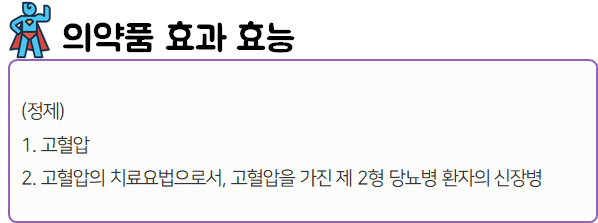 이 의약품은 단백뇨 감소작용 및 신장보호 효과가 있으며, 혈관확장작용으로 혈압을 감소시켜주는 약이니 참고하시길 바랍니다.