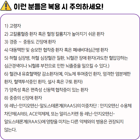 - 다음 환자는 복용 전 전문가 or 의사와 상담 후 복용하시길 바랍니다.