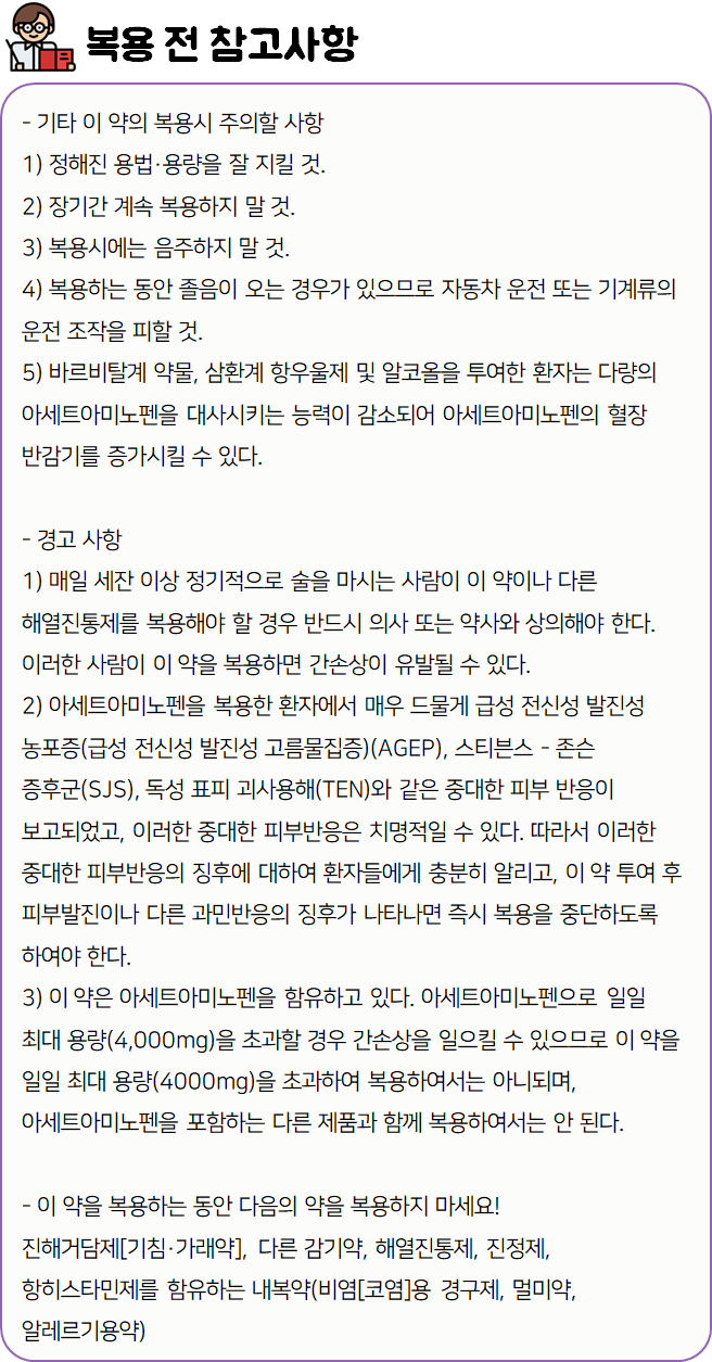 이 의약품은 오한, 발열, 콧물, 코막힘, 기침, 가래 등의 감기 증상을 개선하는 약이니 참고하시길 바랍니다.