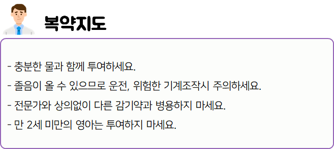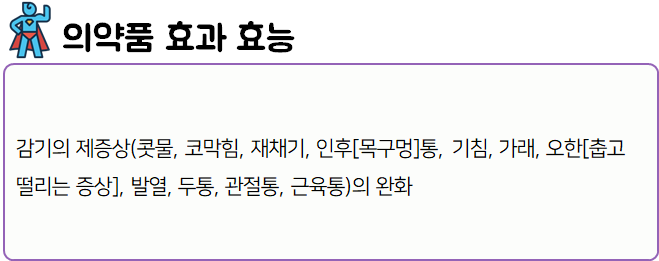 이 의약품은 오한, 발열, 콧물, 코막힘, 기침, 가래 등의 감기 증상을 개선하는 약이니 참고하시길 바랍니다.