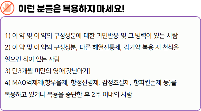 - 다음과 같은 사람은 복용 시 위험할 수 있으므로 복용하지 마시길 바랍니다.