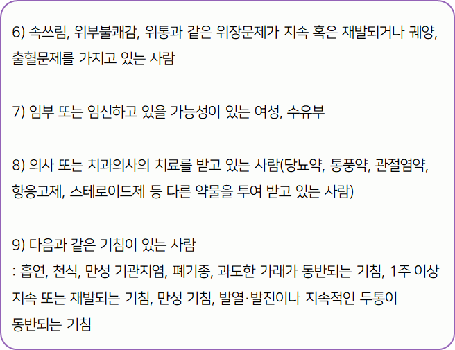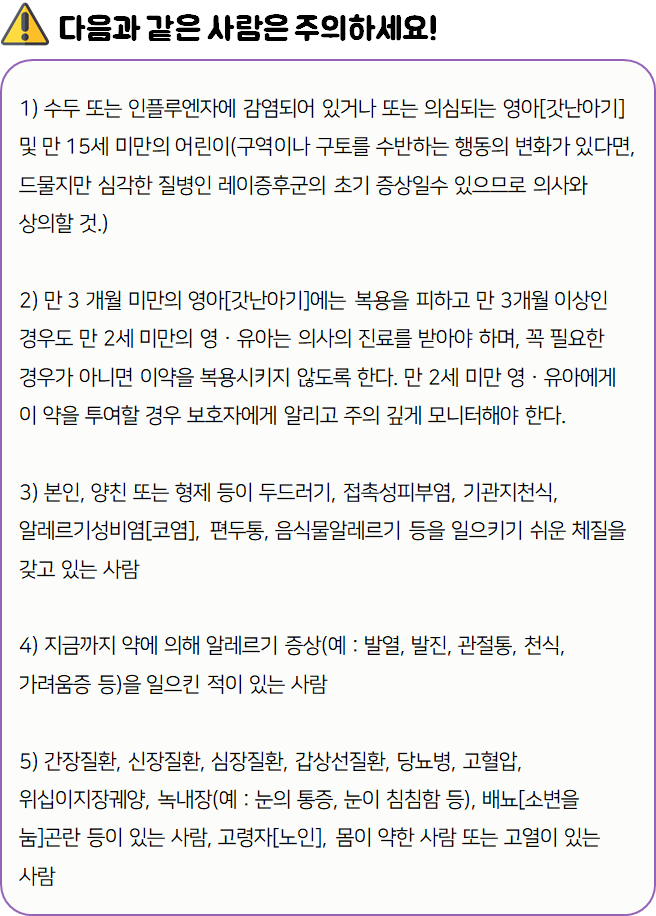 - 다음과 같은 사람들은 의약품 복용 전 참고하시기 바랍니다.