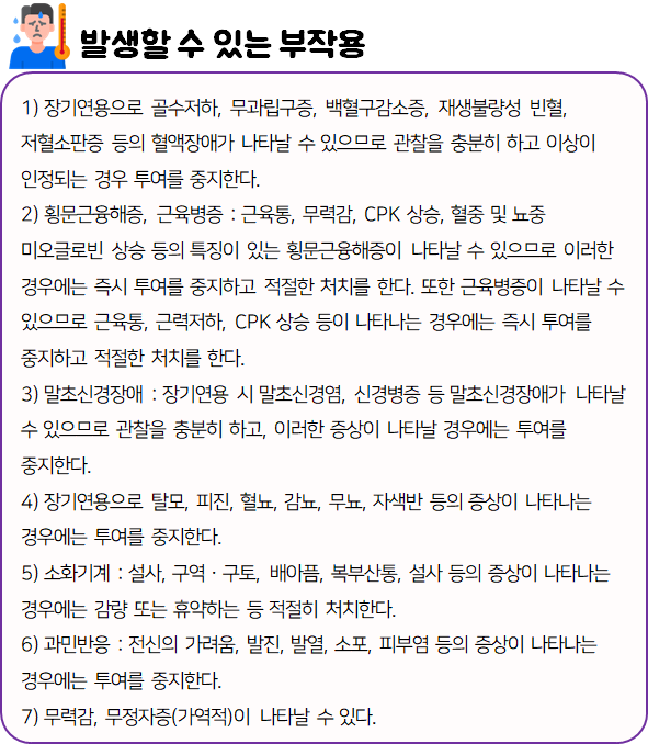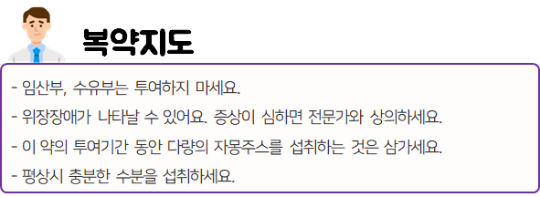 의약품은 반드시 복용 전에 복용 시 발생할 수 있는 부작용이나 주의사항 등을 미리 확인하신 후 드셔야 안전하게 먹을 수 있습니다.