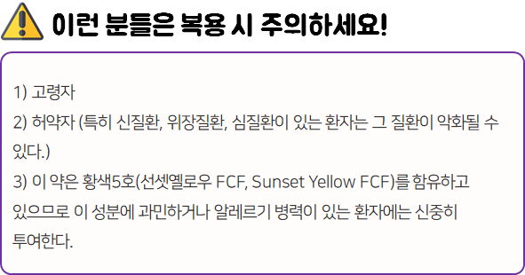 - 다음과 같은 사람은 복용 시 위험할 수 있으므로 복용하지 마시길 바랍니다.