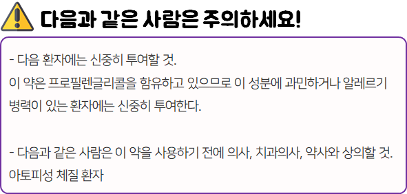 - 다음과 같은 사람들은 의약품 사용 전 참고하시길 바랍니다.