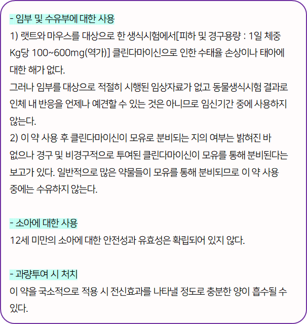 크레오신티 의약품 복약 지도