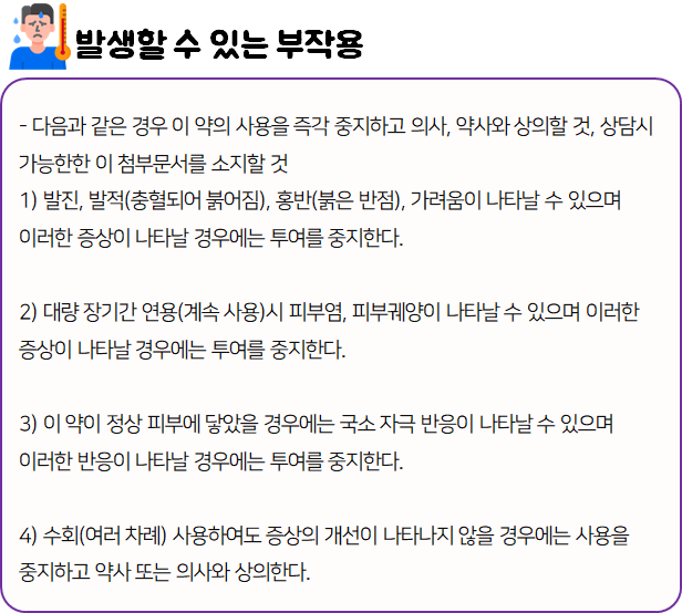 혹시라도 사용 중 부작용이나 각종 이상 반응이 나타나게 되면 즉시 사용을 멈추고, 전문가 혹은 의사와 상담하세요!
