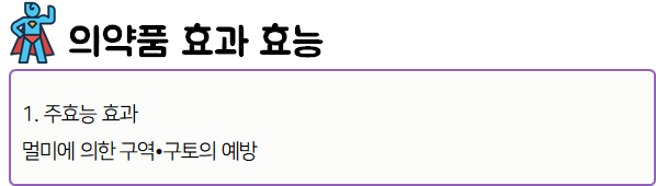 이 의약품은 '개개의 기관계용 의약품 > 소화기관용약 > 최토제, 진토제'이니 참고하시길 바랍니다.