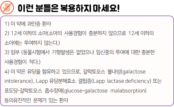 - 다음 환자는 복용 시 위험할 수 있으므로 복용하지 마시길 바랍니다.