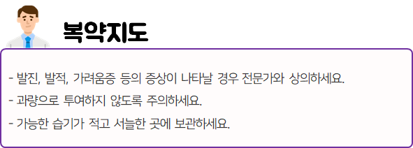 또한 복용 중 이상 반응이 나타나면 즉시 복용을 멈추고, 전문가나 의사와 상담하셔서 복용량을 줄이거나 복용을 멈추시는 것이 좋습니다.