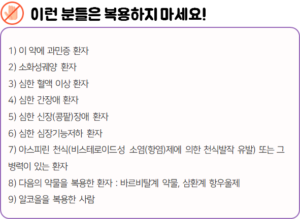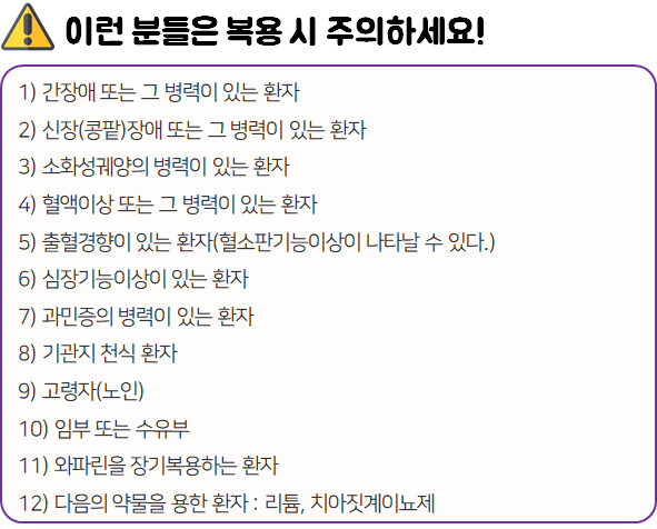 - 다음 환자는 복용 전 전문가 or 의사와 상담 후 복용하시길 바랍니다.