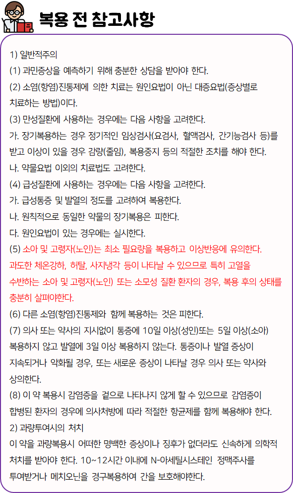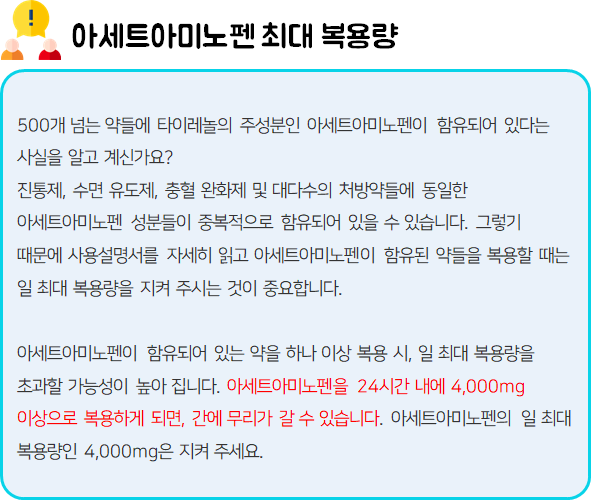 - 타이레놀 복용 전 참고하시길 바랍니다.