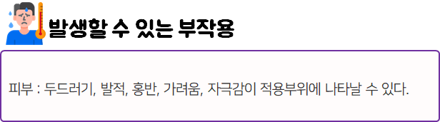 혹시라도 사용 중 부작용이나 각종 이상 반응이 나타나게 되면 즉시 사용을 멈추고, 전문가 혹은 의사와 상담하세요!