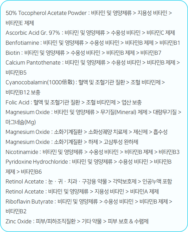 : 대사성 의약품 > 비타민제 > 기타의 비타민제