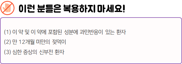 - 다음과 같은 사람은 복용 시 위험할 수 있으므로 복용하지 마시길 바랍니다.